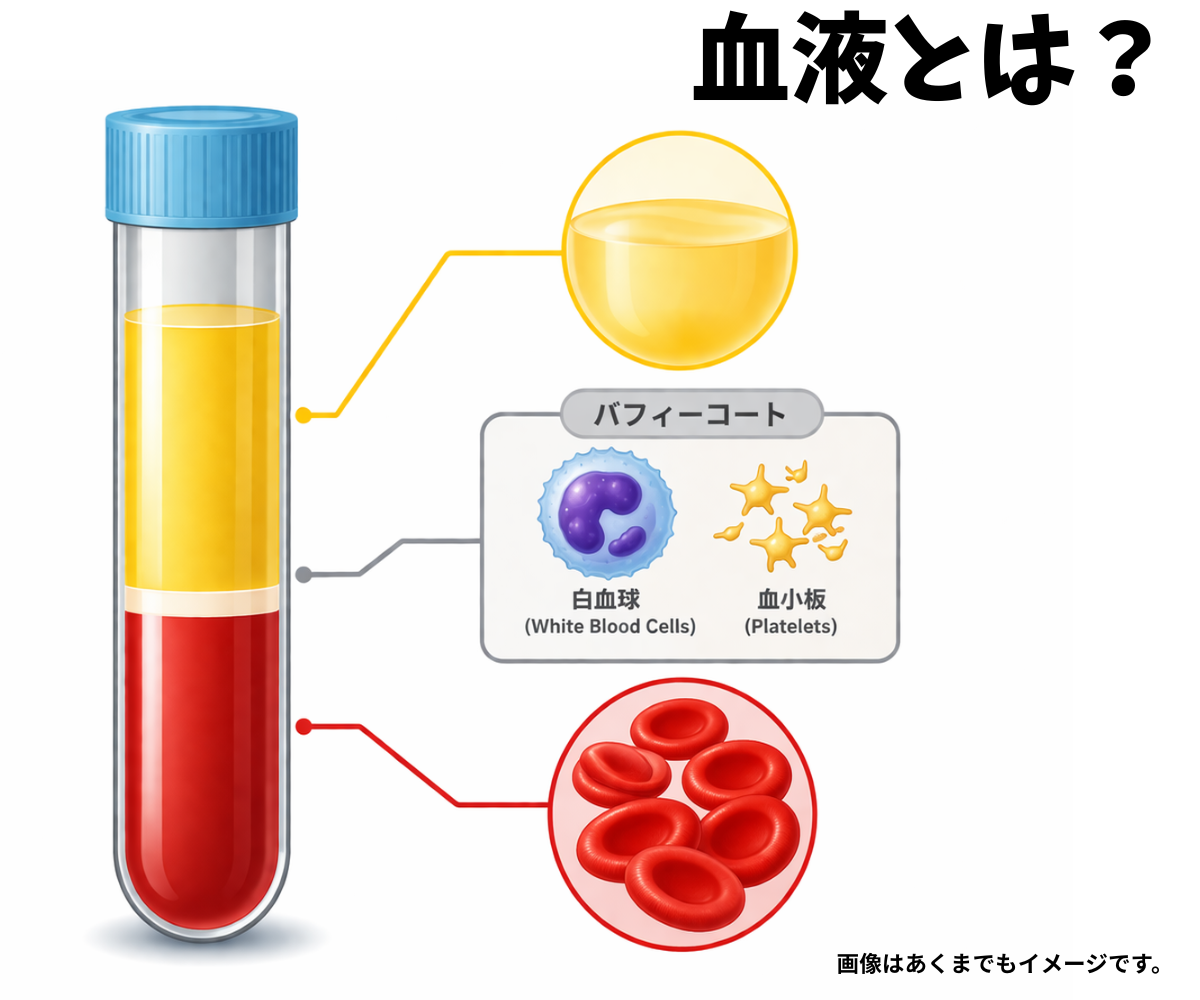 実は血液は、ただの赤い液体ではなく、いくつかの成分に分かれており、検査によって“見る場所”がまったく異なります。