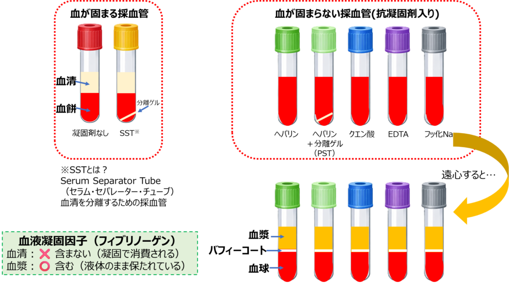 - 採血管の本質的な分類(固まる/固まらない)