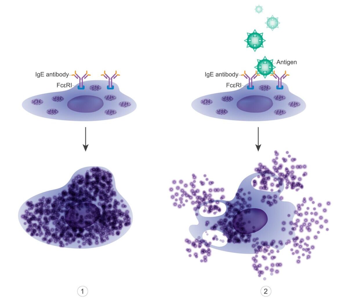 しかし、IgEが1つだけ抗原に結合しても、細胞は基本的に反応しません。